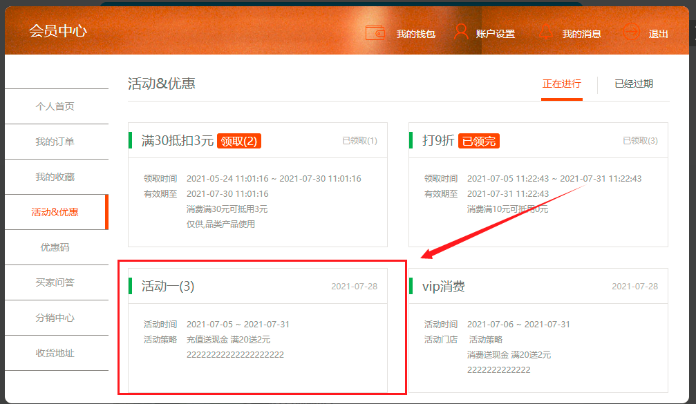 如果选择的是累计消费满多少则:累计消费活动期间只能获取一次